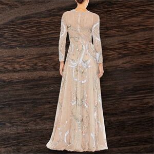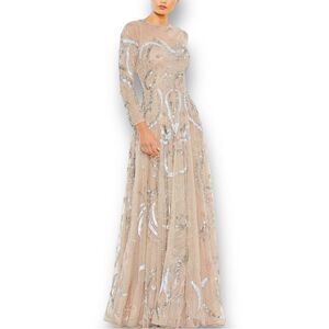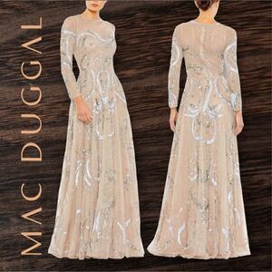 MAC DUGGAL Women’s Long Sleeve Embellished Illusion Evening Gown in the Size 18
