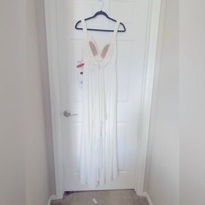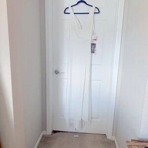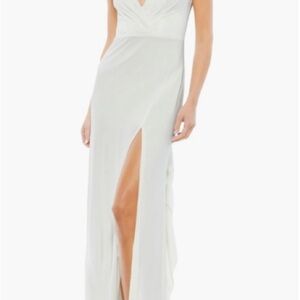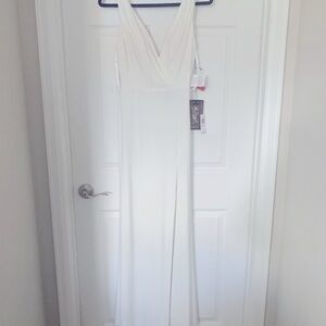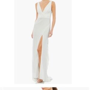 MAC DUGGAL Women’s V-neck Cowl Back Surplice Knit Stretch Gown White Size 4 New