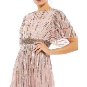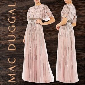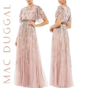 MAC DUGGAL Women’s Embellished Full Length Layered Sleeves Gown in the Size 10 in Vintage Rose Color