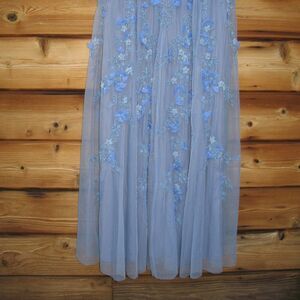 MAC DUGGAL 14521 Blue Floral Embellished Short Sleeve Mesh Gown Dress