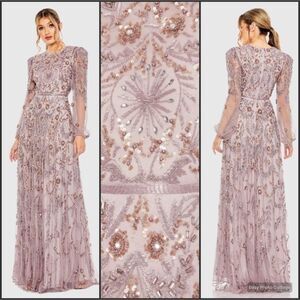 MAC DUGGAL $798 93930 Purple Puff Sleeve Embellished A Line Gown Dress