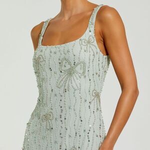 MAC DUGGAL 94129 Green Beaded Mesh Scoop Neck Fitted Gown With Bows