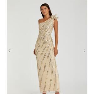 Mac Duggal Embellished Floral Detail One Shoulder Gown Nude Gold Size 6 NWT
