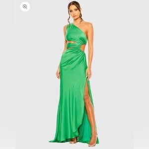 MAC DUGGAL Green Cut Out One Shoulder Satin Gown size 6 NWT