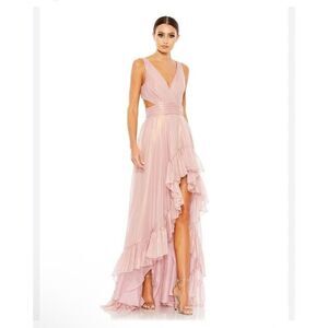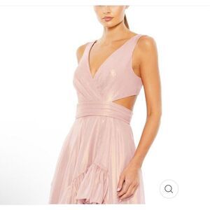 MAC DUGGALL Cut Out High Low Ruffle Gown In Rose Gold Pink Metallic Size 10 $398