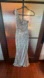 MAC DUGGAL Silver Sequined One Shoulder Draped Lace Up Gown size 8 NWT
