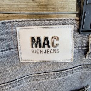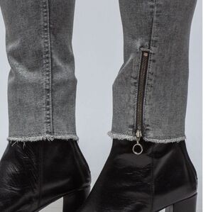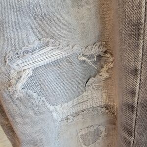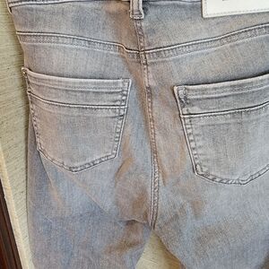 10/10 excellent condition and has some stretch. Cute zipper detail. Light grey wash.