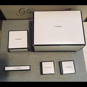 MAC Cosmetics Stylist Collection includes: 2 eye shadows. 1 lipgloss, 1 Beauty powder with additional refill and a beautiful hand bag. All in a super lux heavy packaging.