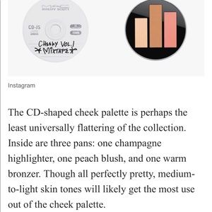 This is a super unique palette that resembles a CD-R with a highlighter, blush and bronzer