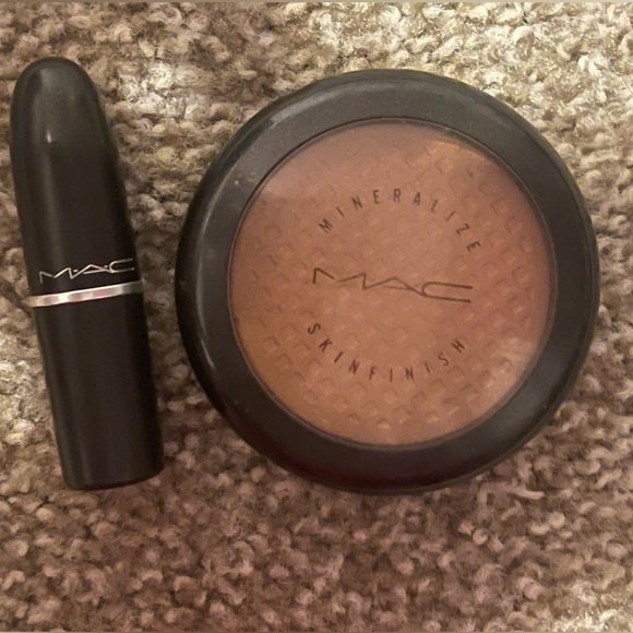 MAC bronzer (Gold deposit,mineralize skin finsh), has been used barley. Still completely full, && Red MAC lipstick. (RUBY WOO retro matte) A35💄 is BRAND NEW!