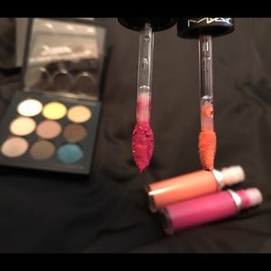 1 eyeshadow pallet with 9 eyeshadows, 2 matte liquid lip. Pallet is She's A Model, lip colors are Mango Mango & Slipper Orchid. Never been used and comes with original boxes. Swatches were done with extras I have from my own kit.