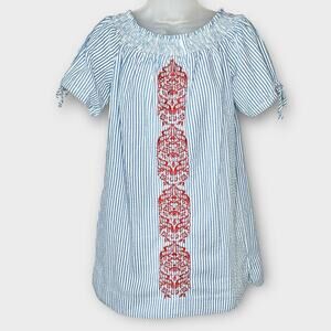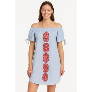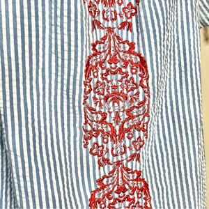 MACBETH COLLECTION Embroidered Seersucker Dress Size Small Spring Summer