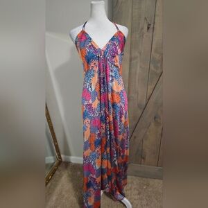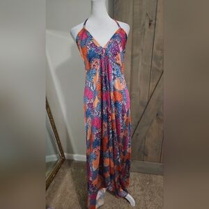 MACBETH COLLECTION by Margaret Josephs Satin Vibrant Floral Multicolor Maxi. XS