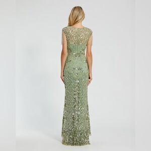 MAC DUGGAL 4908 Green High Neck Sleeveless Beaded Fringe Fitted Gown 4