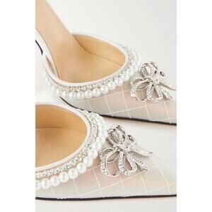 MACH & MACH Bow of Elizabeth Pearl Embellished Iridescent Leather Heels Shoes