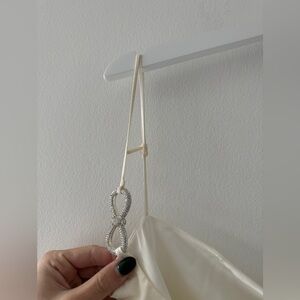 MACH & MACH Crystal Bow Embellished Draped Ivory Mini Dress 10