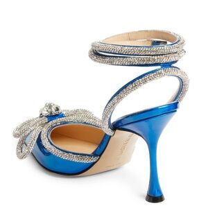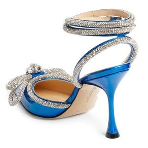 Crystals sparkle around the signature double bow, silk-satin pointy toe and ankle strap of a celeb-fave stiletto that's ready for your own red-carpet moment.