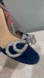 Chic blue satin heels with sparkling silver accents. Ideal for elegant evenings.