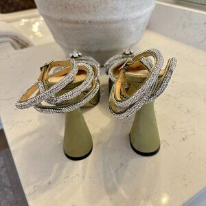 MACH & MACH Double Bow Satin Platform Pump in Pistachio Size 8US / 38EU