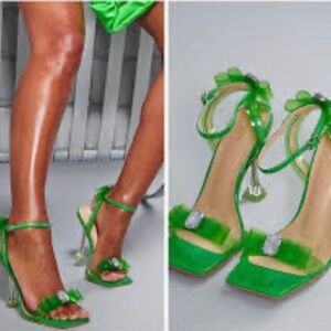 Baguette crystals sparkle at the bow-set ankle strap and square toe of a color-pop sandal styled from translucent PVC and leather and always red-carpet ready.