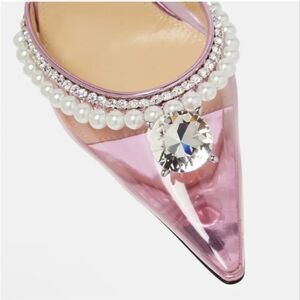 New with dustbag. These heavily embellished pumps have PVC uppers, crystal heels and strands of faux pearls that wrap around the ankles.