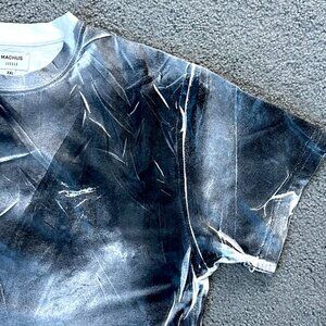 This is a MACHUS IIIIII Black and White Spray Tee which is can easily be considered One of a kind Streetwear Art to Wear. The condition is excellent like new without tags.