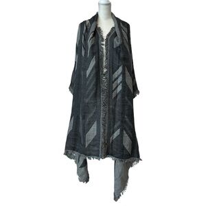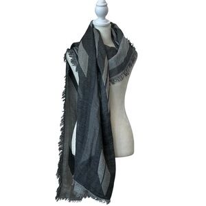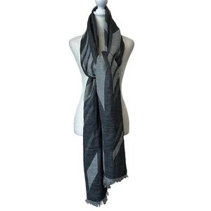 MACKAGE Geometric Pattern Fringe Edged Scarf Shawl Wrap in Gray One Size