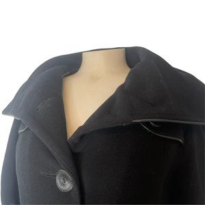 MACKAGE Women's Black Wool Cashmere Blend Collard Button Front Long Pea Coat S