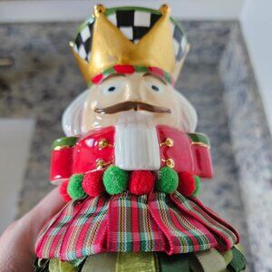 This is an AUTHENTIC MACKENZIE CHILDS NUTCRACKER tassel. LOVELY addition to your Holiday decor or collection or as a gift!! ADORABLE nitcracker is accented with the CLASSIC Courtly Check. There is also Tartan pattern ribbon on the bottom. It measures approximately 13" L (from top to bottom ...including the black and white corded hanger) by 3 1/2"W ( at widest point.) Comes from a non-smoking home. Has the Mackenzie Childs metal tag. There is no original box. Purchased from Neiman Marcus. Pictures of actual item.