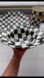 MACKENZIE CHILDS Courtly Check Enamel Serving Bowl Scalloped Petal Edge 11.5” BLACK WHITE