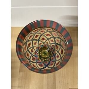 Elevate your drinkware collection with this vintage MacKenzie-Childs circus arbor rose handpainted water goblet. The floral pattern in multicolor and art deco style make this goblet an elegant addition to any table setting. Crafted from quality glass, this goblet has a unique production style that sets them apart from ordinary drinkware.