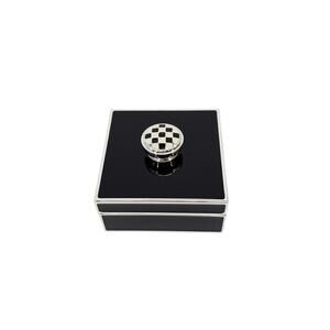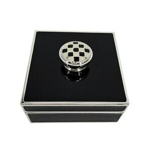 MACKENZIE-CHILDS Black Silver Plated Trinket Box with Check Knob