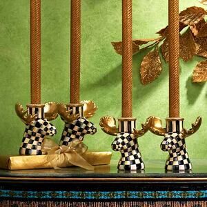 Mackenzie-Childs, Candlesticks, Candle Holder, Moose, Check Moose, Holiday, Holiday Decor, Home Decor, Gift, Home Gift, Hostess Gift, Neiman Marcus, Saks Fifth Avenue