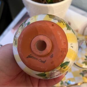 Gorgeous Mackenzie Childs Honeymoon Lemon Curd Salt and Pepper shakers with matching fluted gold trim tray. In amazing condition and no flawss to note! Hard to find and retired collection.