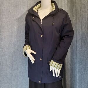 MACKINTOSH New England Rain Wind Breaker Jacket Removable Hood Navy Women's S