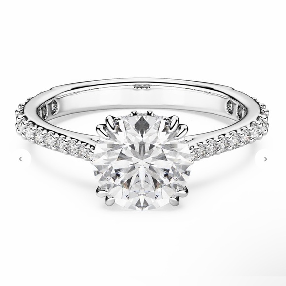 Proving there is power in simplicity, this Stilla ring is a wardrobe essential. Expertly crafted, the scene-stealing princess-cut center stone is enhanced with elegant pavé on the gallery and along the rhodium plated band. Wear it solo and shine bright.
