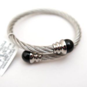 Macy's designer twisted cable stainless steel bracelet with genuine Black onyx tips. Onyx is approx 10mm size. Cable is approx 1/4" wide. New with tags, original retail was $260.