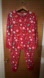 Christmas red pajama set with festive holiday patterns. Soft and comfortable for a cozy night's sleep. Perfect for the upcoming holidays and especially Christmas Eve, and Christmas Day. Even perfect to wear winter long. Crew neck long sleeve top, and jogger style buttons. Set is in excellent condition, literally never worn but have been washed. Get your holiday on!!!