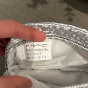 New cosmetics bag and goodies. Print MAC on the bag isn’t on as it’s just a stock photo. Style in silver texture.