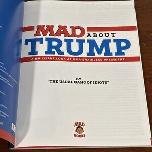 Preowned-good condition. Get your hands on a copy of "Mad about Trump: a Brilliant Look at Our Brainless President" by various authors. This trade paperback book, published by DC Comics in 2017, is a hilarious take on our president and his antics. With 128 pages of witty illustrations and jokes, it's the perfect addition to any humor lover's collection.