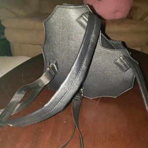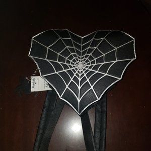 Unique heart-shaped backpack with spider web design. Perfect for a bold statement. Features sturdy straps and zipper closure.