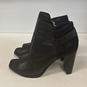 MAD3 Black Cow Skin Hair Leather Block Heel Peep Toe Booties