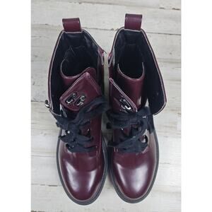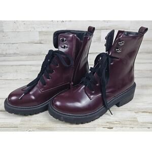 MADDEN GIRL Alicee Women’s Sz 7.5M Combat Platform Vegan Burgundy Leather Boots.