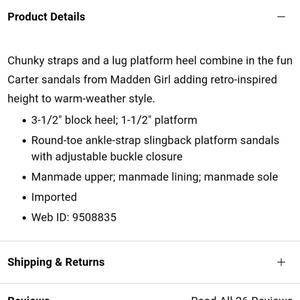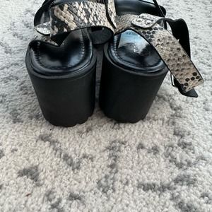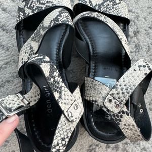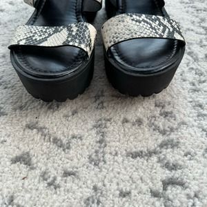 Madden Girl Carter platform reptile print adjustable ankle buckle strap lug sandals. See last photo for online description and specs.
