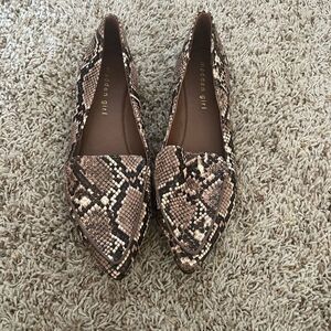 MADDEN GIRL SLIP ON SHOES LOAFERS WOMEN SIZE 7 SNAKESKIN PRINT FLATS CREAM/BLACK