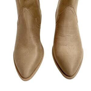 western cowgirl boots, tan faux leather boots, boho fall footwear, modern country chic, neutral block heel boot, festival outfit essential, rustic feminine style, coastal cowgirl trend, everyday western staple, Nashville fall look, transitional capsule boot.