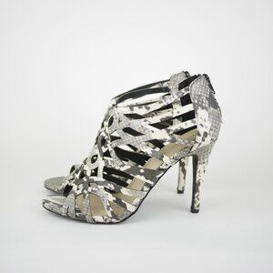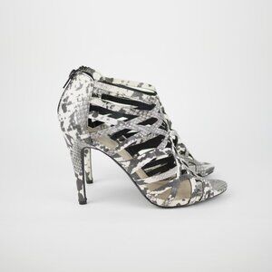 MADDEN GIRL Women's 7.5 Gray & beige snake print high heel sandals shoes DALISSA