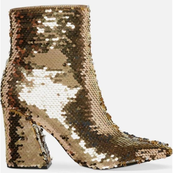 MADDEN GIRL Women’s Cody Pointed Toe Boots Gold Sequin NIB