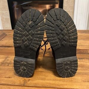 Madden Girl Jshanna lace up combat boots, size 4, metallic burgundy ankle boots , small scuff mark Right inner heel see picture
