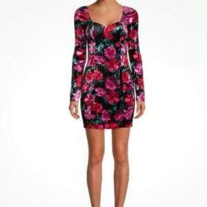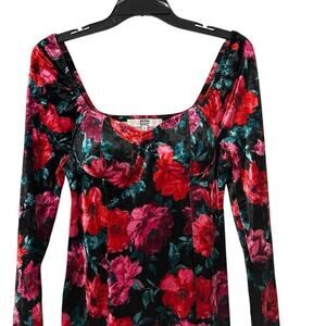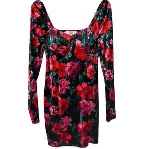 MADDEN NYC Velvet Pink & Red Floral Scoop Neck Bodycon Mini Dress Size Medium